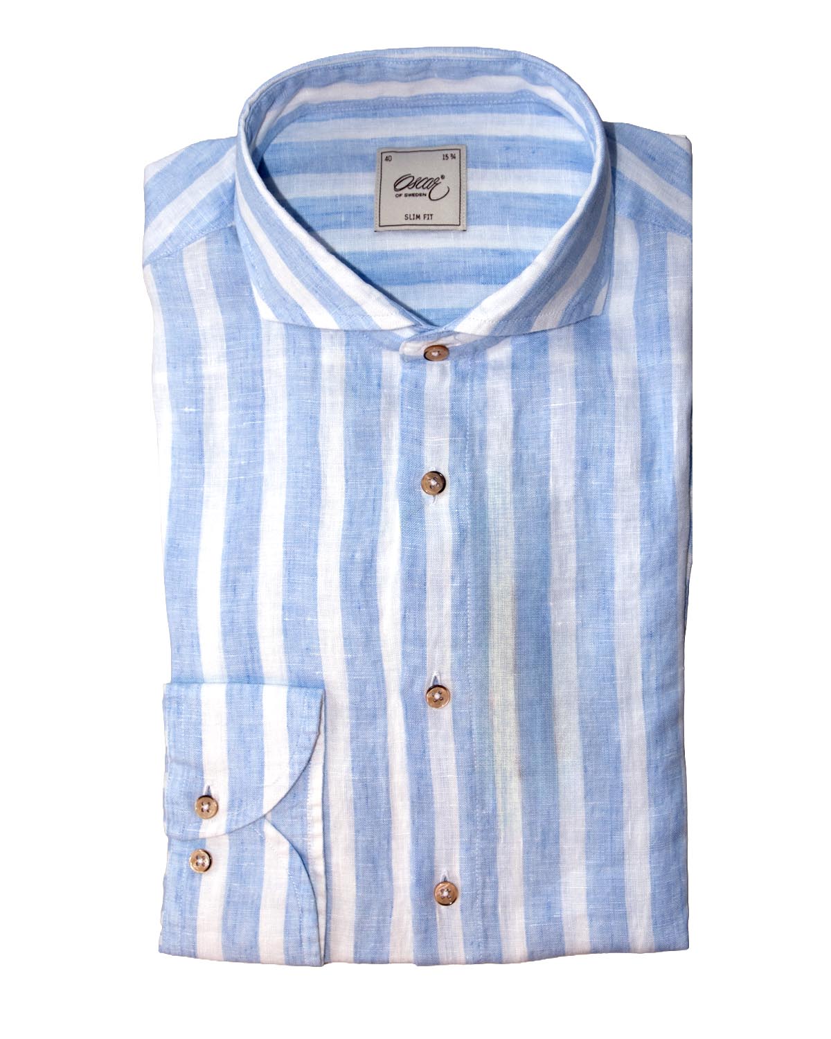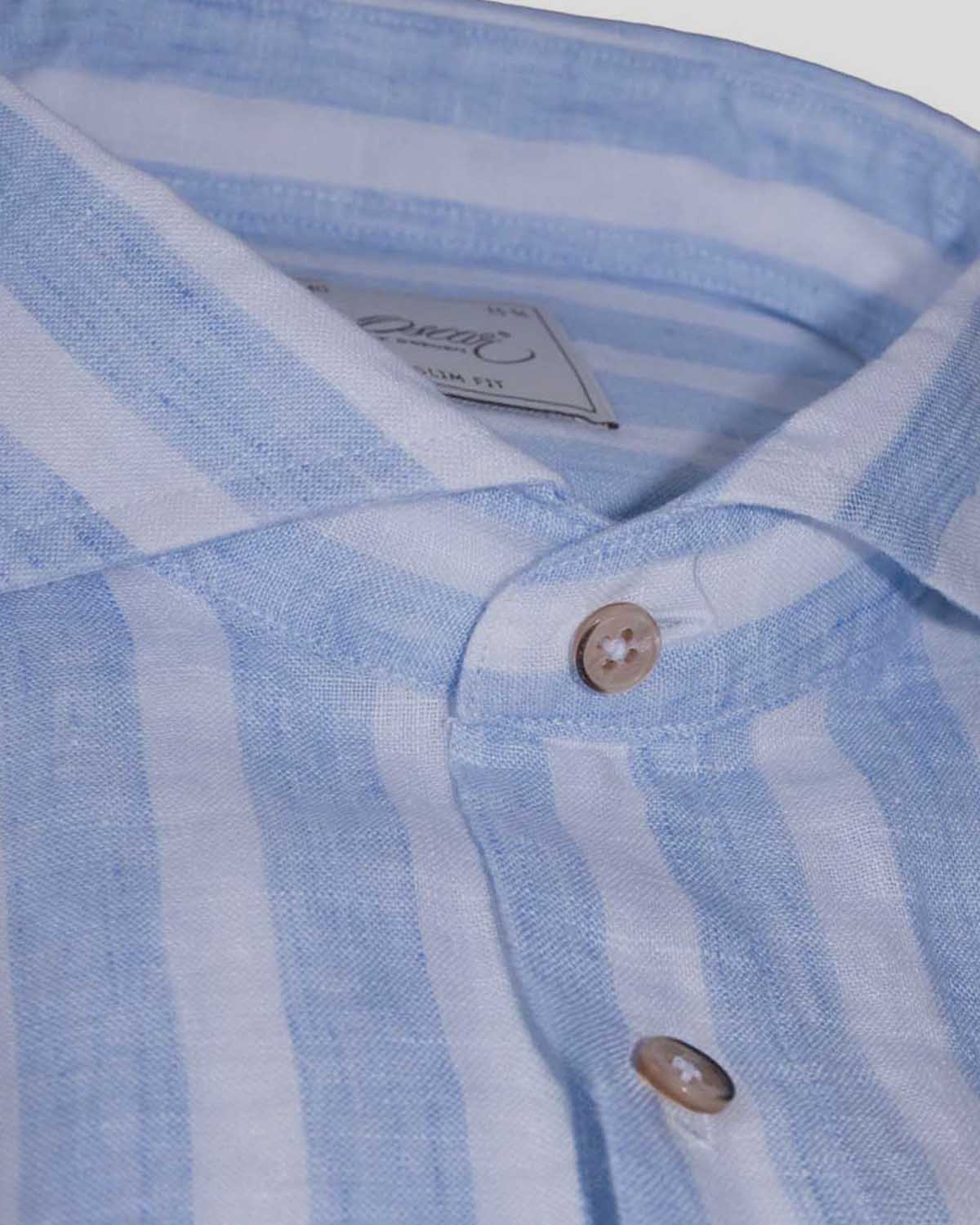 Ljusblå randig linneskjorta slim fit