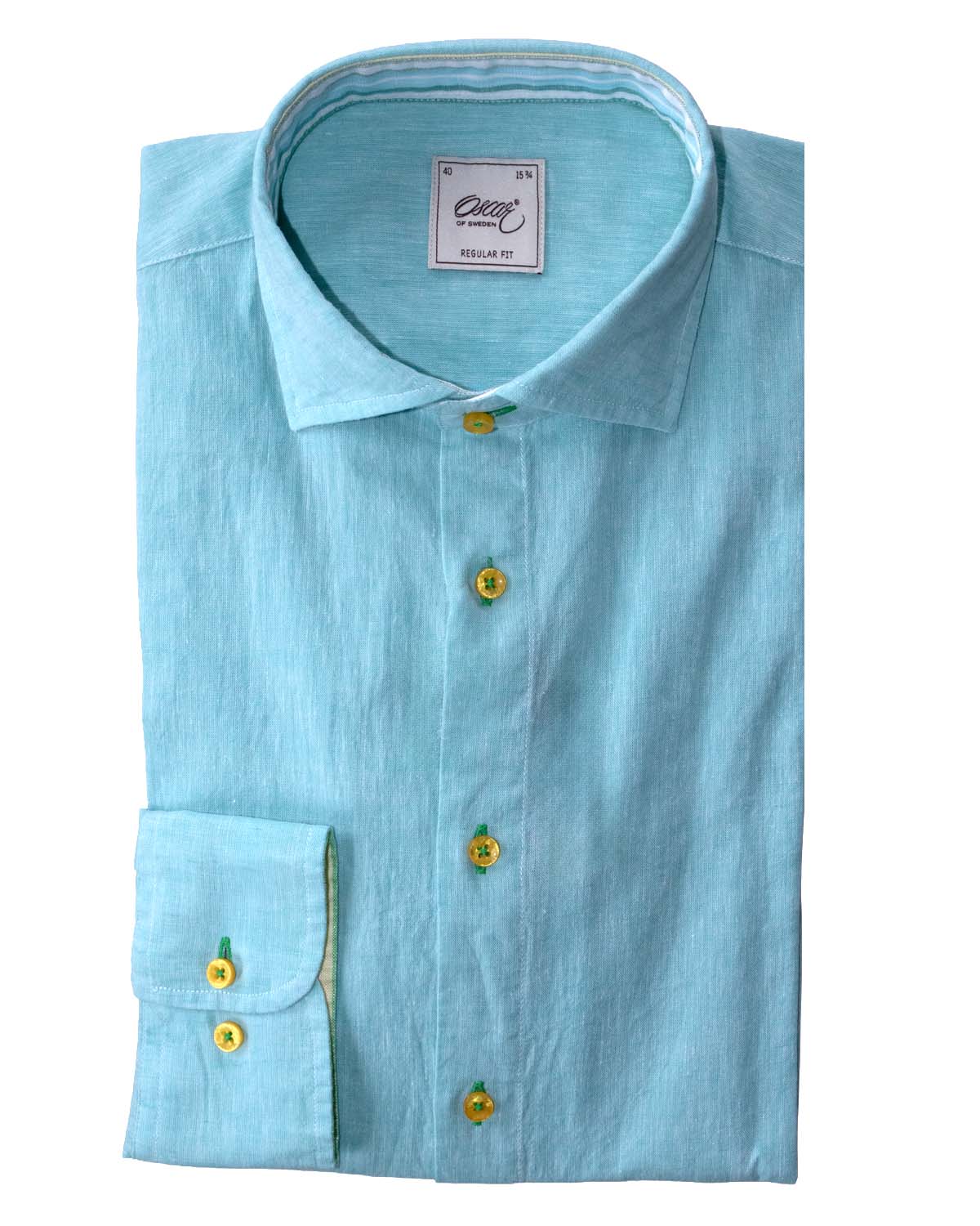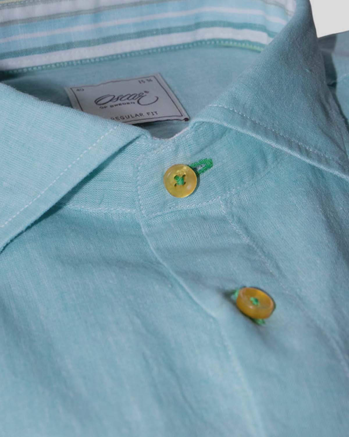 Turkos skjorta i linnemix med kontrastdetaljer regular fit